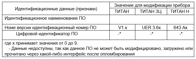 Идентификационным признаком ПО служит номер версии, который отображается на дисплее при включении или по запросу через меню прибора.