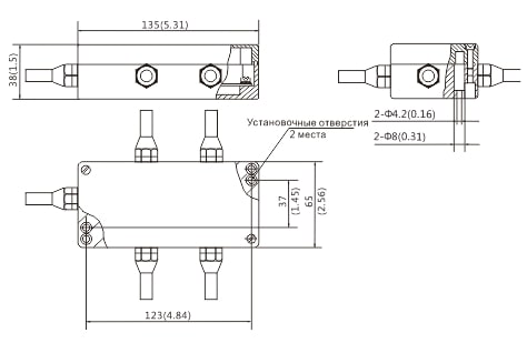 Для соединения и калибровки от 2 до 4 датчиков с 4-х или 6-ти жильным кабелем.
