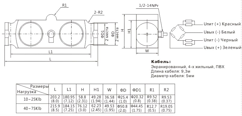 | Нагрузка | от 10Klb до 75Klb |