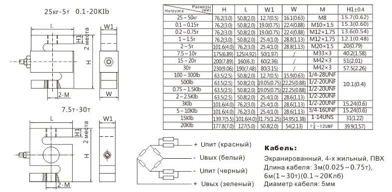 S – образный тип применяется для изготовления подвесных бункерных весов, крановых весов, тестовых систем, разрывных машин, а также при модернизации механических весов. Благодаря высоким метрологическим характеристикам этот тип датчиков находит широкое применение во многих промышленных системах весоизмерения. Корпус H3 выполнен из стали с никелевым покрытием, класс защиты тензодатчика IP67. Датчик дополнительно может комплектоваться шарнирными подвесами, обеспечивающими защиту от «изломов» и позволяющими существенно уменьшить время установки и запуска оборудования.