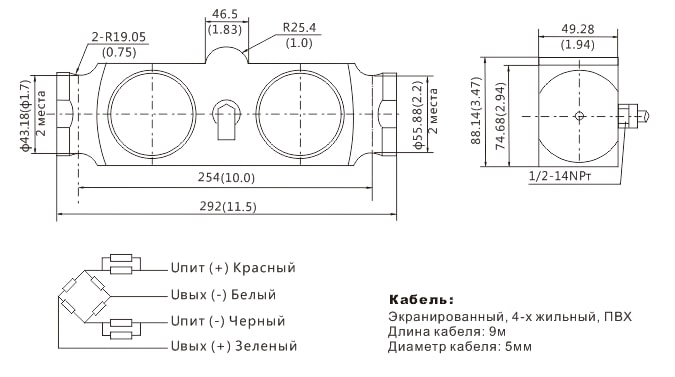 H9H — балочный двухопорный тензометрический датчик на изгиб.